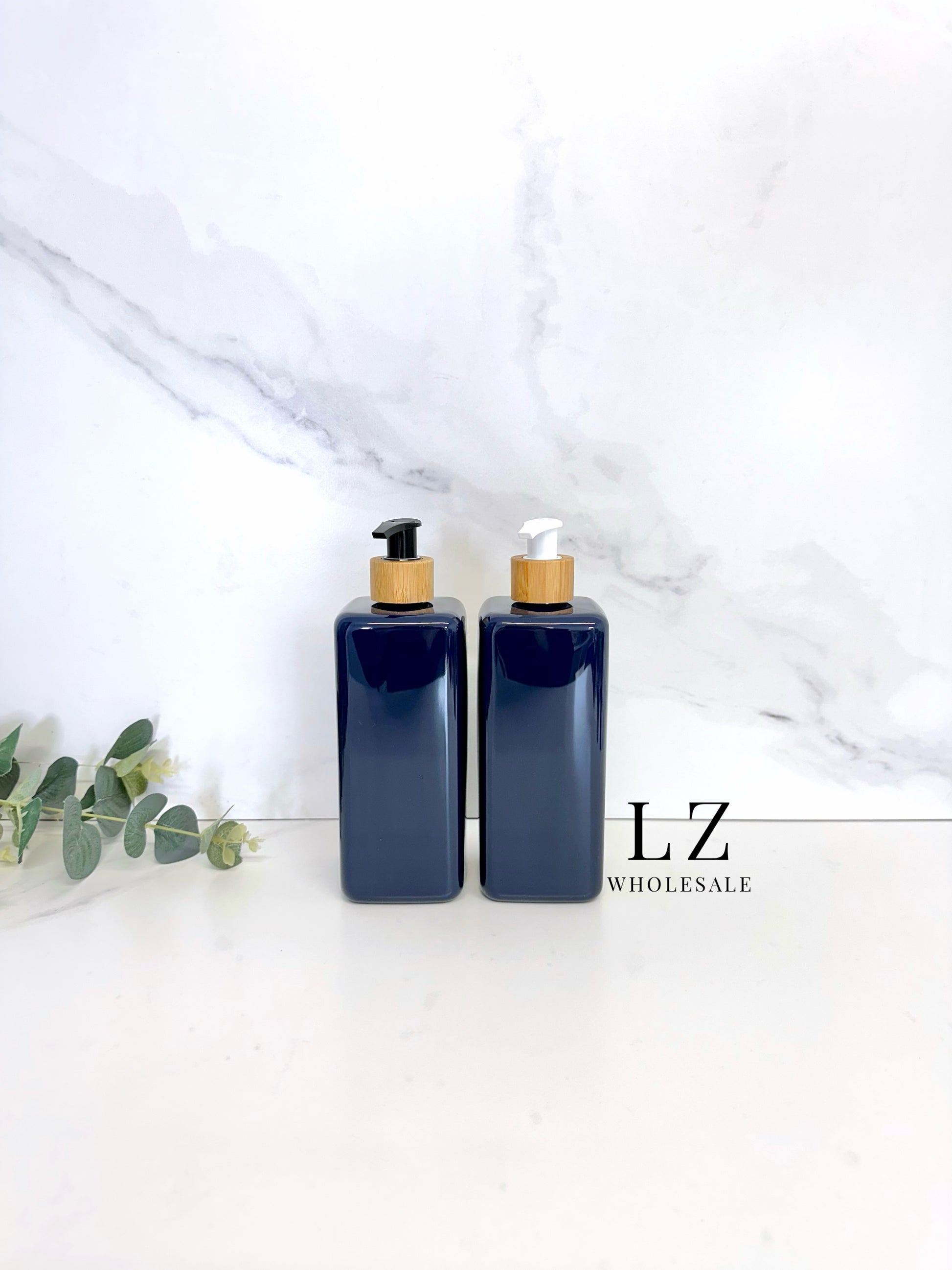 Navy Square 500ml Bottle With Bamboo Pump
